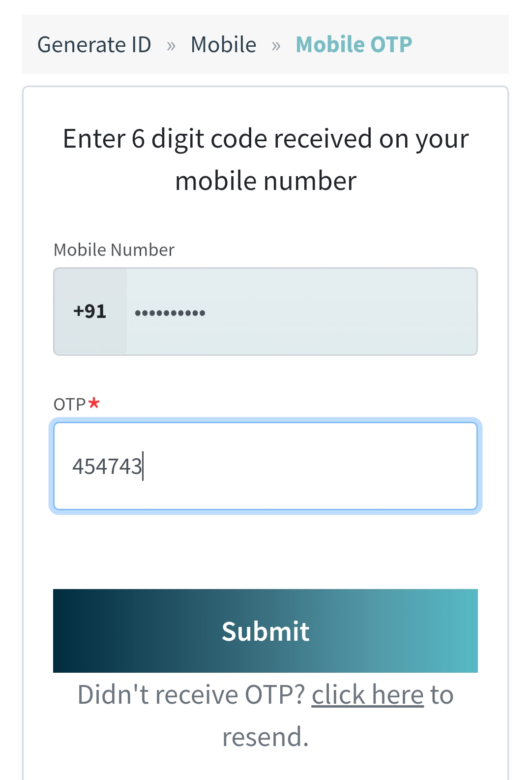 यहां पर आपको मोबाइल नंबर डालना है और उसके बाद आपके मोबाइल पर Otp आएगा, ओटीपी डालने के बाद आपको सबमिट कर देना है।