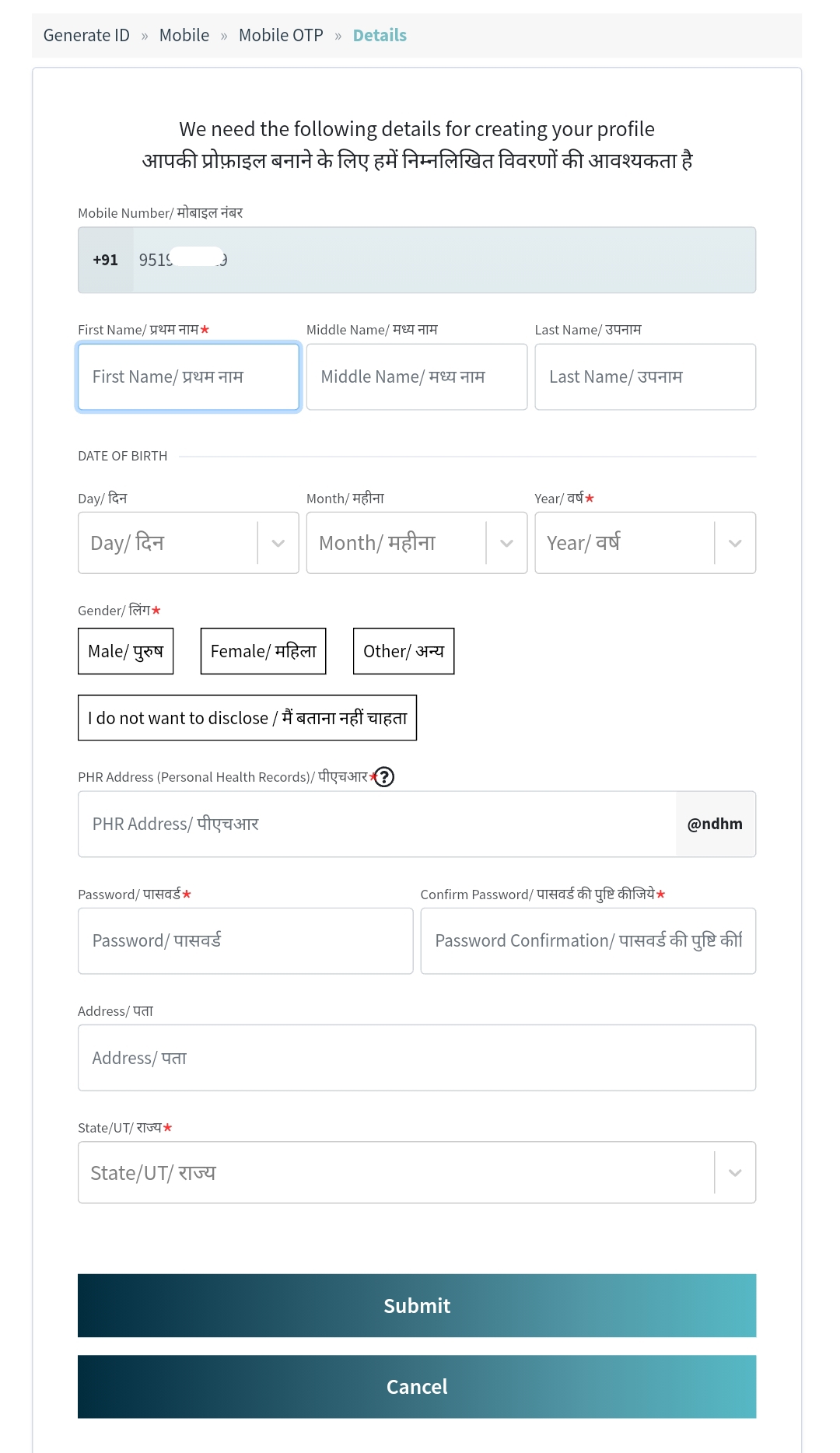 सबसे पहले आपको https://healthid.ndhm.gov.in/register वेबसाइट पर जाना है,
