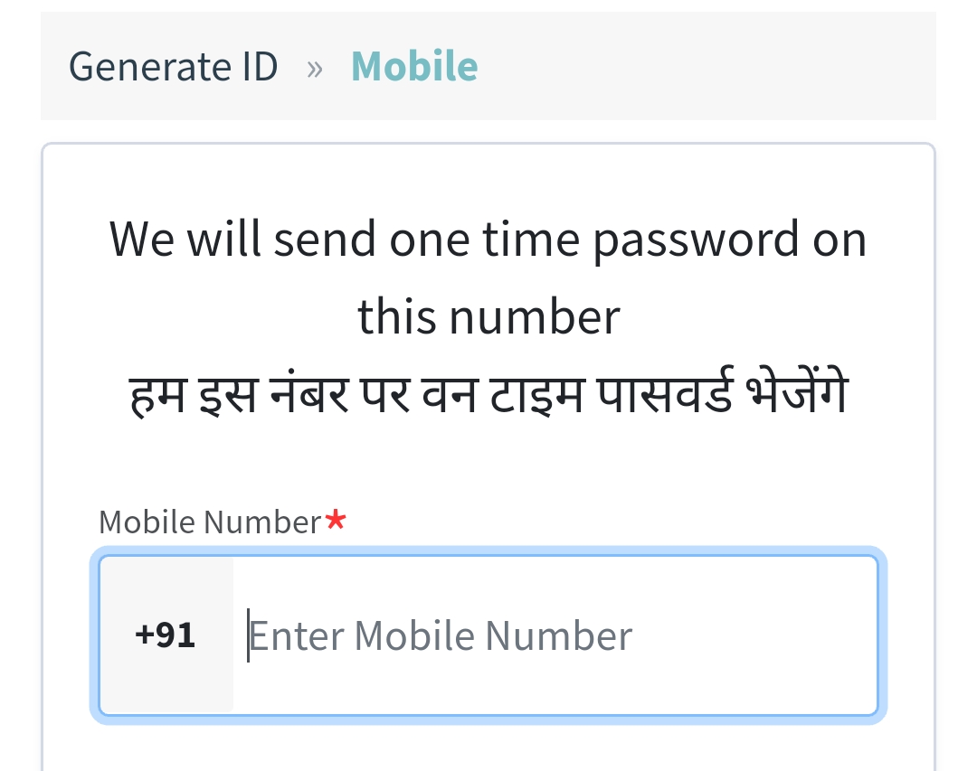 अब आपके सामने नया पेज आ जाएगा यहां पर आपको Generate via Mobile पर क्लिक करना है,